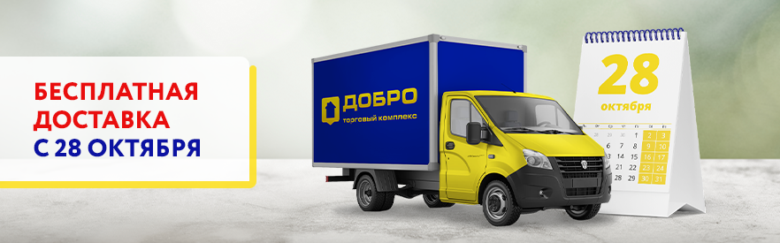 Акция «Доставим бесплатно» действует при покупке не крупногабаритного товара. Мы доставим заказанный товар бесплатно в пределах 4 км от ТК Добро. Доставка далее 4 км рассчитывается из общепринятых расценок, указанных на сайте. Разгрузка товара также высчитывается из общепринятых расценок.