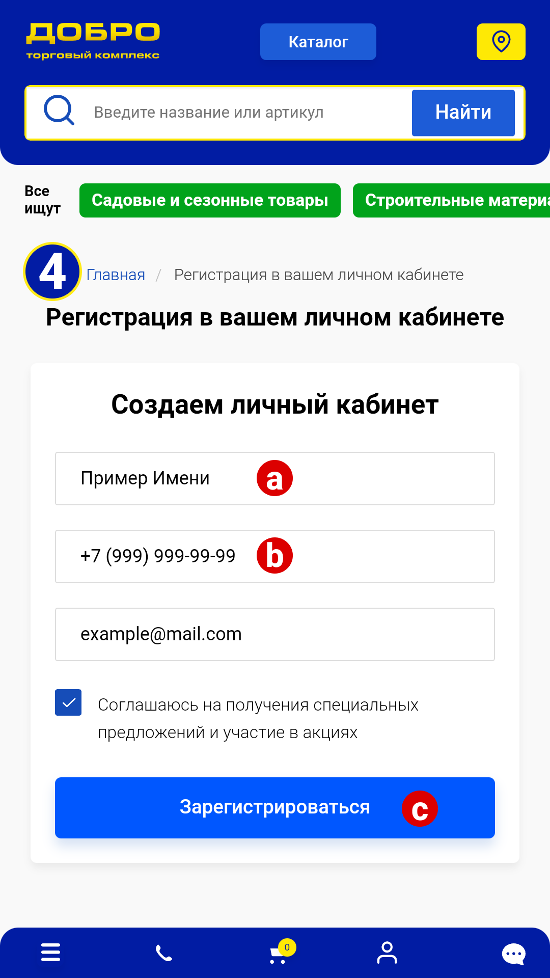- Заполните поля Имя и Номер телефона, после чего нажмите Зарегистрироваться