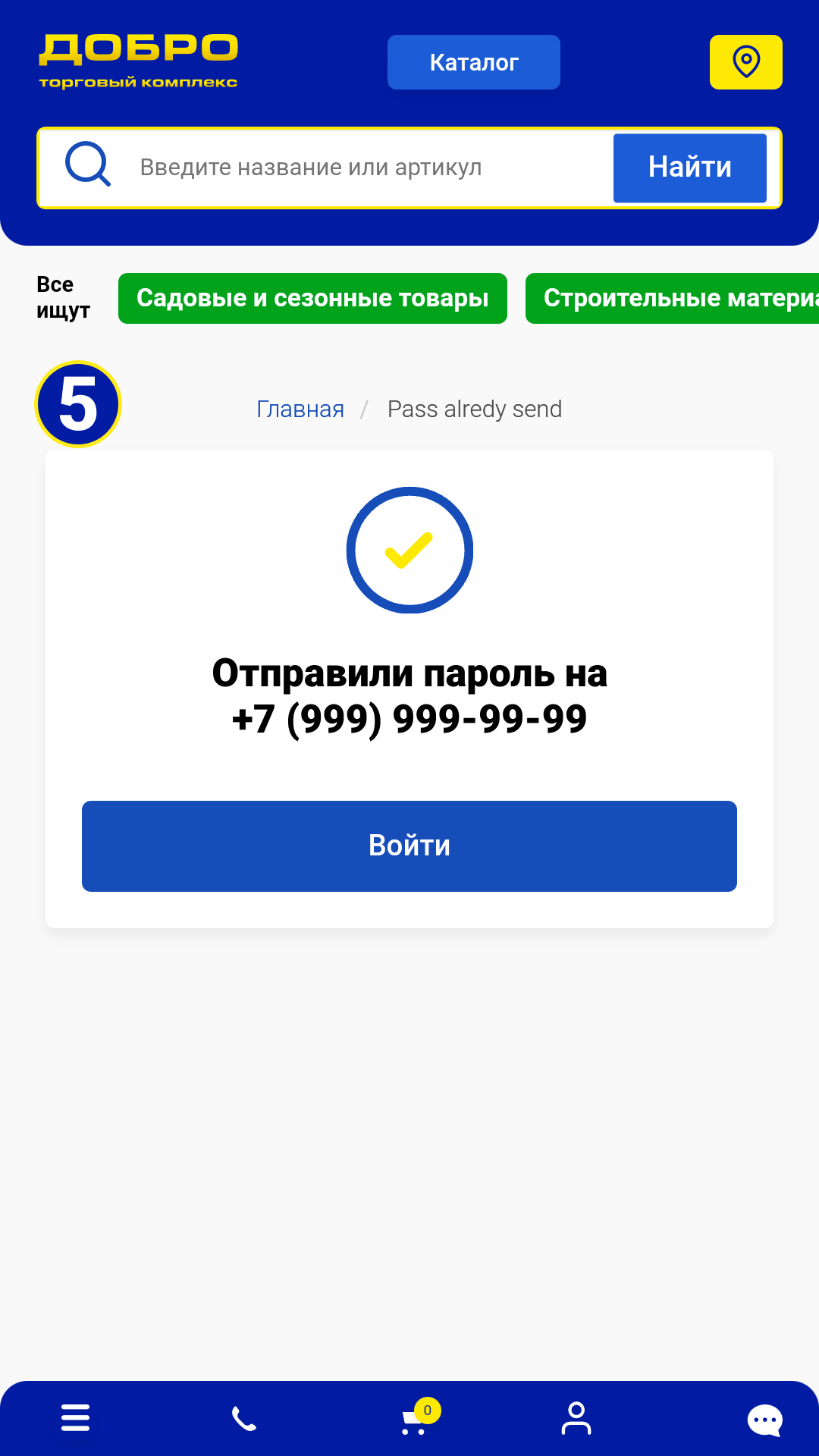 - Пароль отправлен вам в СМС, нажмите "Войти"